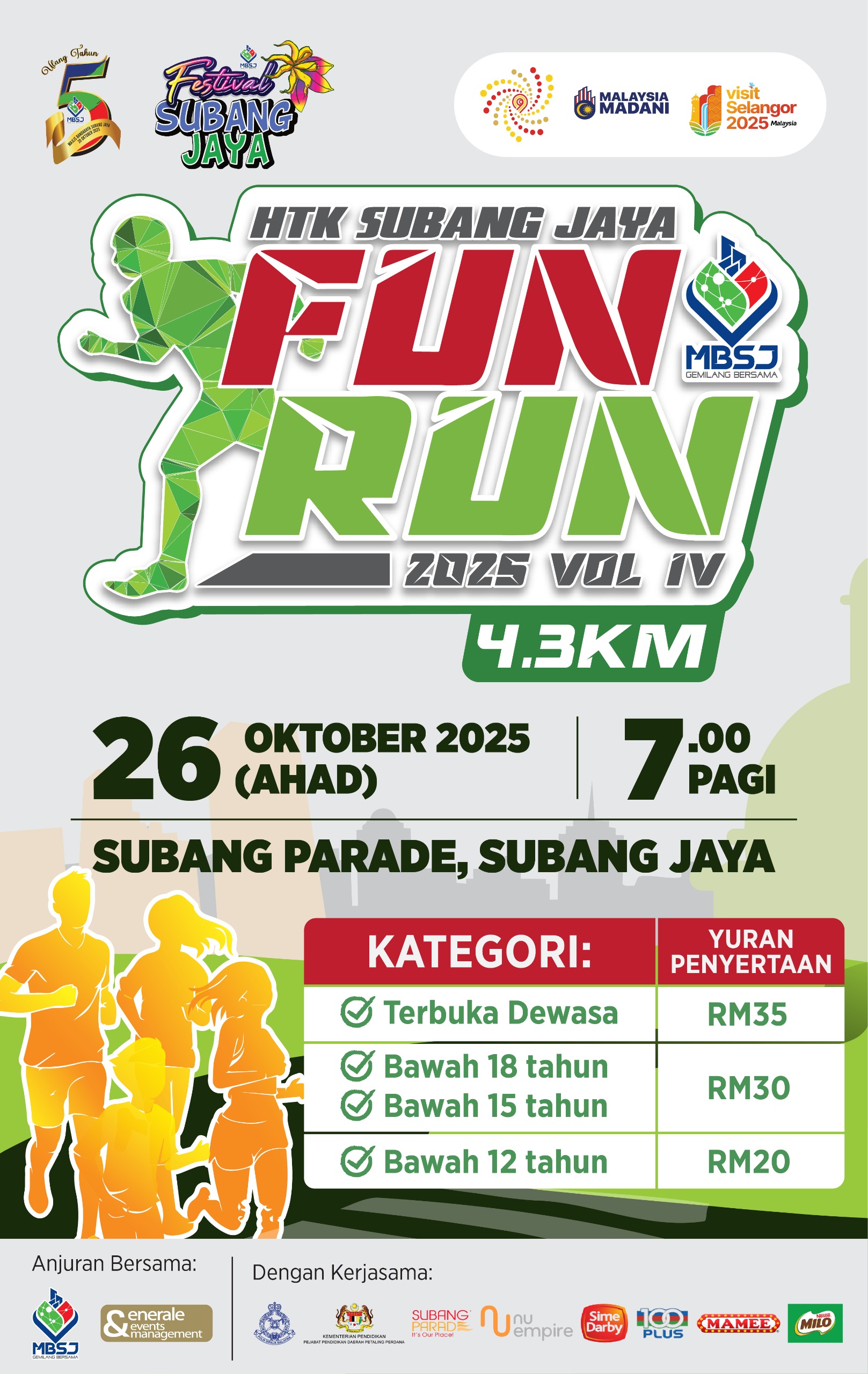 PROGRAM FUN RUN 4.3KM SEMPENA FESTIVAL SUBANG JAYA DAN SAMBUTAN ULANG TAHUN KE-5 MBSJ